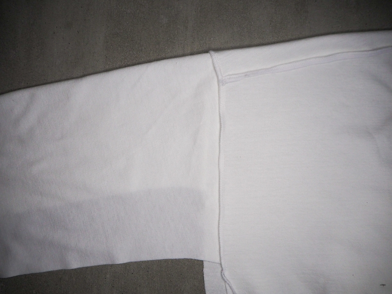 身頃を合わせていきますが、距離が違うので袖口と衿の方を伸ばしながら縫っていきます。